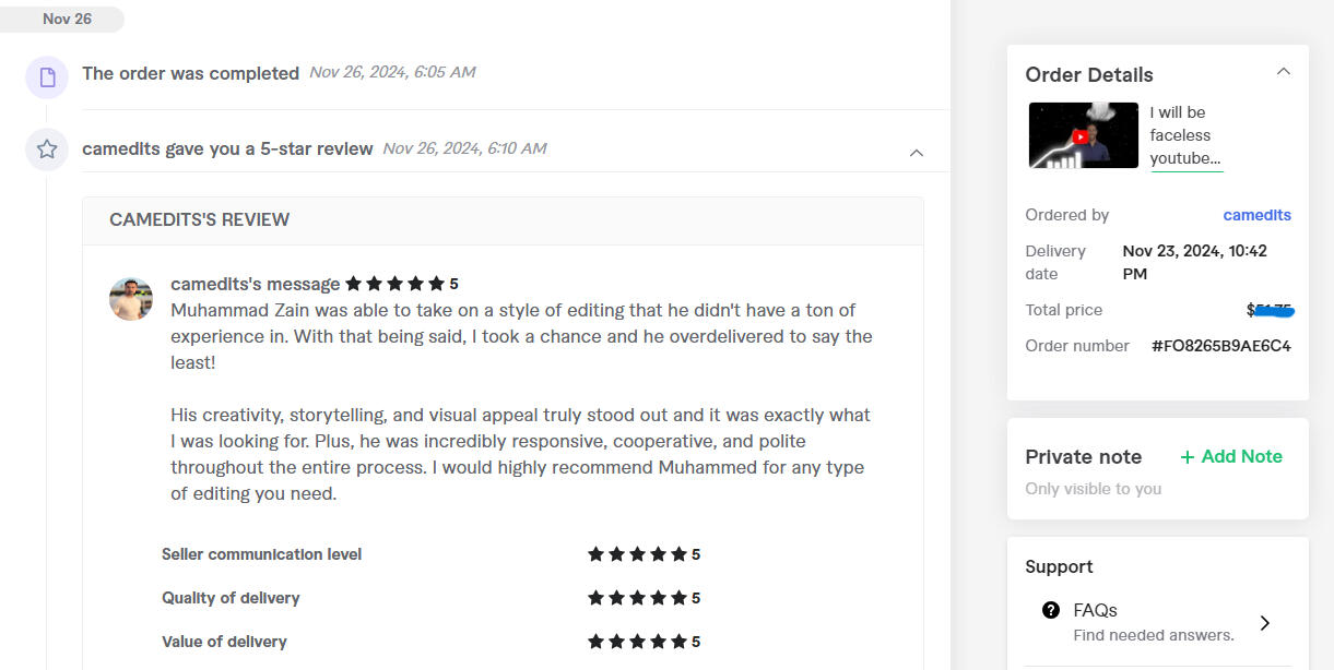 Muhammad Zain was able to take on a style of editing that he didn't have a ton of experience in. With that being said, I took a chance and he overdelivered to say the least!His creativity, storytelling, and visual appeal truly stood out and it was exactly what I was looking for. Plus, he was incredibly responsive, cooperative, and polite throughout the entire process. I would highly recommend Muhammed for any type of editing you need.